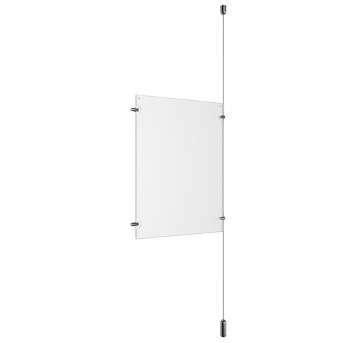 (1) 11'' Width x 17'' Height Clear Acrylic Frame & (1) Ceiling-to-Floor Aluminum Chrome Polished Cable Systems with (2) Single-Sided Panel Grippers (2) Double-Sided Panel Grippers