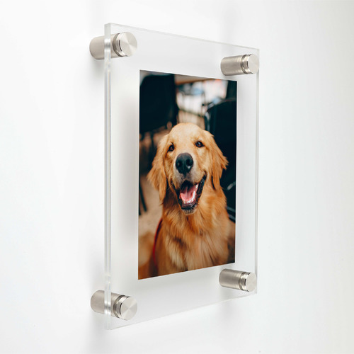 For use with insert sizes up to 11'' x 14'' with (4) 3/4'' x 3/4'' Brushed Stainless Steel Standoffs includes Screws and Anchors.See Specifications for full frame size.Your signage and photographs will stand out within our 11'' x 14'' Deluxe Acrylic Standoff Wall Frame.Our quality standoff wall frames display professionalism and elegance giving your presentation the 3-dimensional appearance of floating on the wall. Our Deluxe Acrylic Standoff Frames feature high quality acrylic panels giving your frame a clearer-than-glass appearance.Print changes are quick and easily accomplished since there is no need to remove the standoff hardware from the wall.Our acrylic standoff wall frames are ideal for promoting your brand, daily specials, photos and informational signage.Designed for graphic inserts up to 11'' x 14''.Refer to the Specifications tab for full frame size and installation instructions.