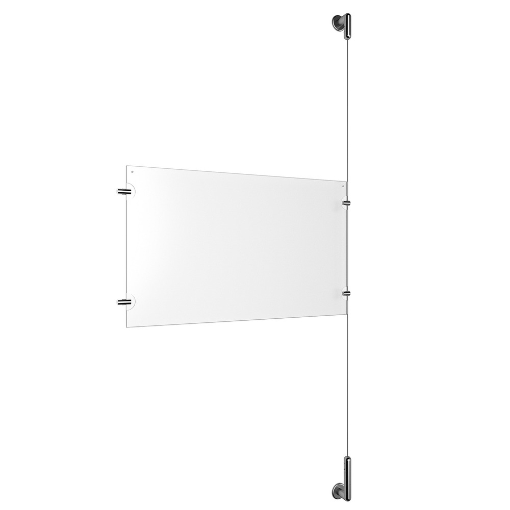 (1) 17'' Width x 11'' Height Clear Acrylic Frame & (1) Wall-to-Wall Stainless Steel Satin Brushed Cable Systems with (2) Single-Sided Panel Grippers (2) Double-Sided Panel Grippers