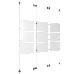 (9) 11'' Width x 8-1/2'' Height Clear Acrylic Frame & (4) Aluminum Chrome Polished Adjustable Angle Signature Cable Systems with (12) Single-Sided Panel Grippers (12) Double-Sided Panel Grippers