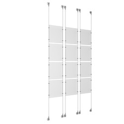 (16) 8-1/2'' Width x 11'' Height Clear Acrylic Frame & (5) Stainless Steel Satin Brushed Adjustable Angle Signature Cable Systems with (16) Single-Sided Panel Grippers (24) Double-Sided Panel Grippers