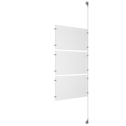 (6) 17'' Width x 11'' Height Clear Acrylic Frame & (3) Aluminum Clear Anodized Adjustable Angle Signature Cable Systems with (12) Single-Sided Panel Grippers (6) Double-Sided Panel Grippers