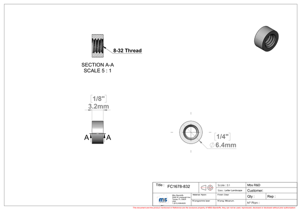 The FC1678-832-A-7 standoff is 1/8'' long with a 8-32 thread and is made of a Iridite (Clear) Aluminum.