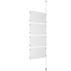(16) 17'' Width x 11'' Height Clear Acrylic Frame & (5) Ceiling-to-Floor Aluminum Chrome Polished Cable Systems with (16) Single-Sided Panel Grippers (24) Double-Sided Panel Grippers