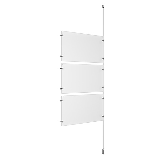 (3) 17'' Width x 11'' Height Clear Acrylic Frame & (1) Ceiling-to-Floor Aluminum Clear Anodized Cable Systems with (6) Single-Sided Panel Grippers (6) Double-Sided Panel Grippers