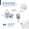 3/4'' Diameter X 3/4'' Barrel Length, Aluminum Rounded Head Standoffs, Clear Anodized Finish Easy Fasten Standoff (For Inside / Outside use) [Required Material Hole Size: 7/16'']