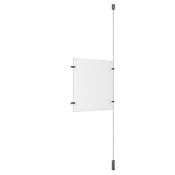 (4) 8-1/2'' Width x 11'' Height Clear Acrylic Frame & (5) Ceiling-to-Floor Aluminum Chrome Polished Cable Systems with (4) Single-Sided Panel Grippers (6) Double-Sided Panel Grippers