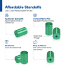 3/4'' Diameter X 1'' Barrel Length, Affordable Aluminum Standoffs, Green Anodized Finish Easy Fasten Standoff (For Inside / Outside use) [Required Material Hole Size: 7/16'']