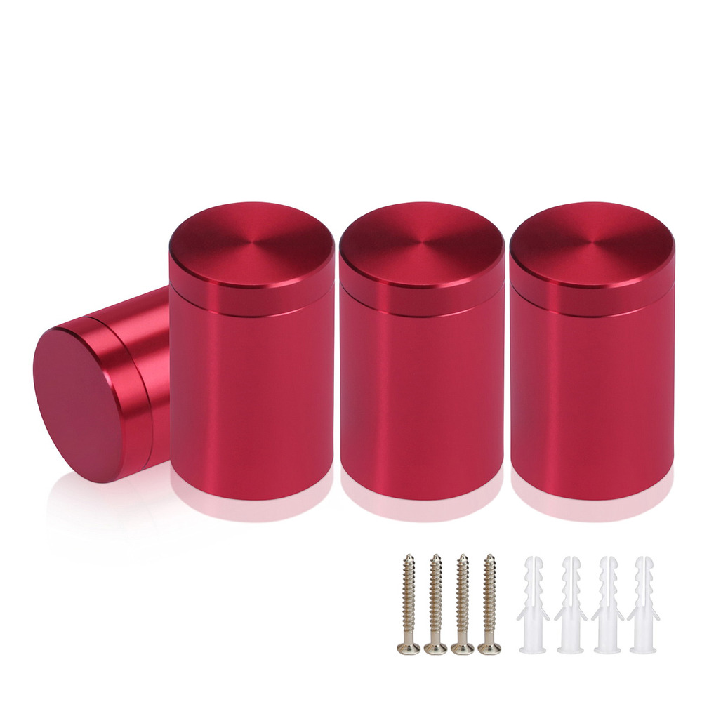 (Set of 4) 3/4'' Diameter X 1'' Barrel Length, Affordable Aluminum Standoffs, Cherry Red Anodized Finish Standoff and (4) 2216Z Screws and (4) LANC1 Anchors for concrete/drywall (For Inside/Outside) [Required Material Hole Size: 7/16'']
