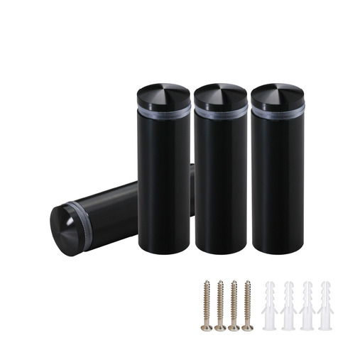 (Set of 4) 5/8'' Diameter X 1-3/4'' Barrel Length, Aluminum Rounded Head Standoffs, Black Anodized Finish Standoff with (4) 2208Z Screw and (4) LANC1 Anchor for concrete or drywall (For Inside / Outside use) [Required Material Hole Size: 7/16'']