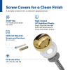 Electroplated SNAP-CAPS® screw caps in bright metal finishes add that finishing touch to decorate your screws. Use Electroplated SNAP-CAPS® Screw Covers instead of chrome screws or brass screws for an improved look. These screw covers/caps are suitable for indoor and outdoor use. Available in Chrome, 24k Gold (like polished brass), Satin Chrome (like stainless steel), Satin Gold and Copper. You will be amazed at how good these screw covers look.