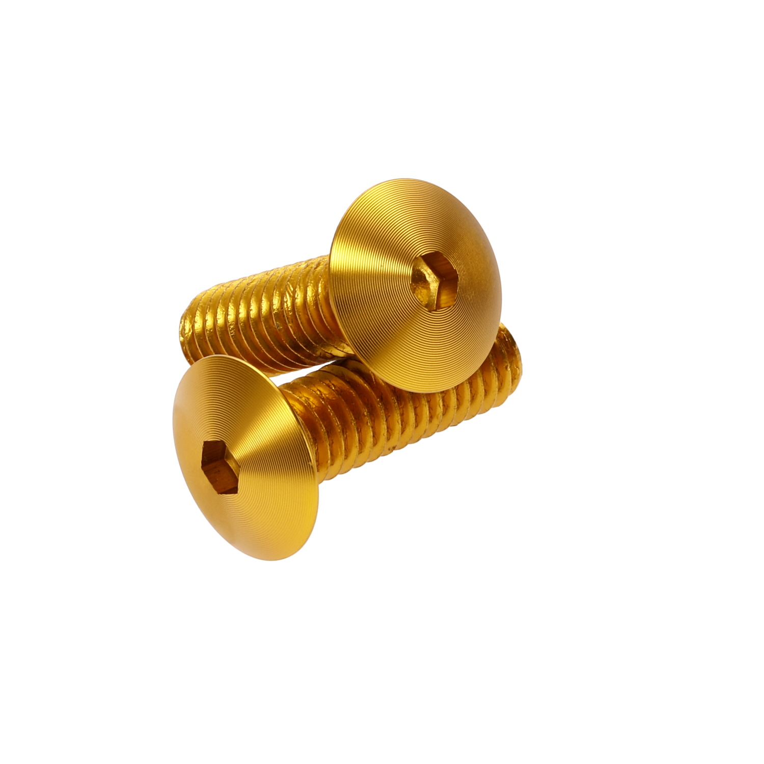 Low Profile Gold Anodized Aluminum Bolt 5/16-18 Thread, Length 5/16'', 3/32'' Hex Broach